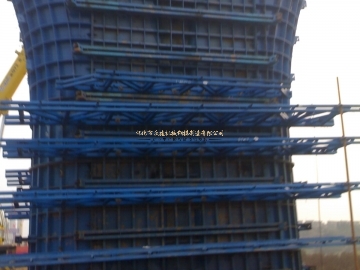 橋梁鋼模板先卸掉圍檁后收縮、吊出,注意不要碰壞墻面。安裝外墻內(nèi)、外側(cè)模板外墻模板放在掛架工作平臺(tái)上,將模板就位,穿螺栓緊固校正,注意施工縫處模板的連接必須嚴(yán)密、牢固可靠,防止出現(xiàn)錯(cuò)臺(tái)和漏漿現(xiàn)象。
